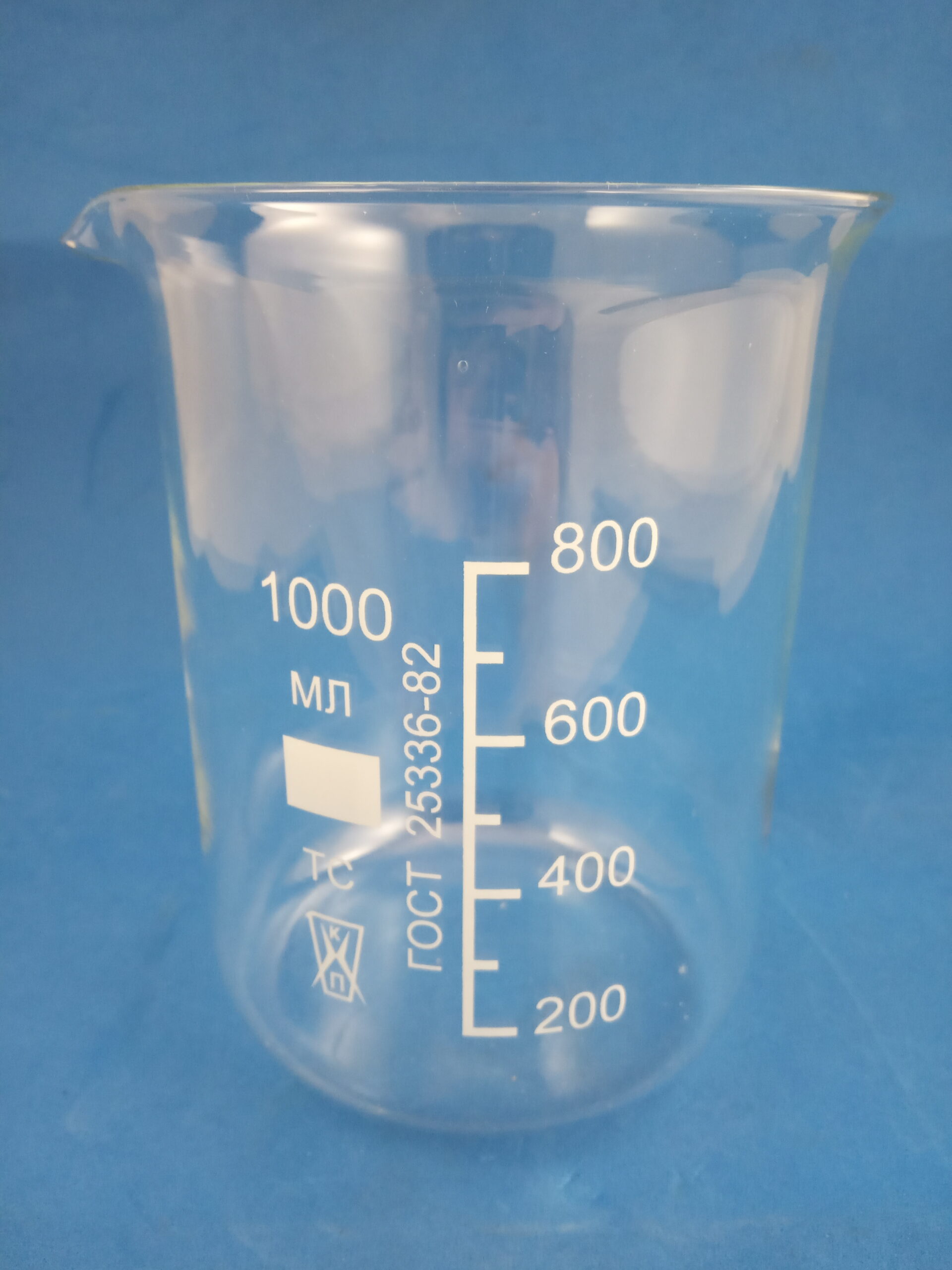Лабораторный стеклянный стакан Н-1-1000 объёмом 1000 мл предназначен для проведения химических опытов и анализов, других лабораторных процедур.